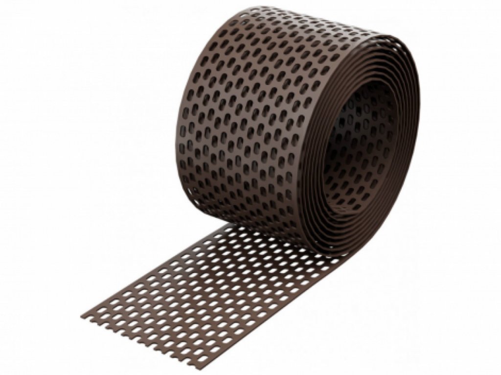 Ochranný plastový pás hnědá, role 0,08 x 5 m, se využívá jako okapový ventilační větrací pás u šikmých střech. Ochranný plastový pás je ochrana před navátím listí a jiných nečistot, hnízdění ptáků, hlodavců a jiného drobného zvířectva. Zabezpečuje plynulou ventilaci a cirkulaci vzduchu v okapech střešních krytin.