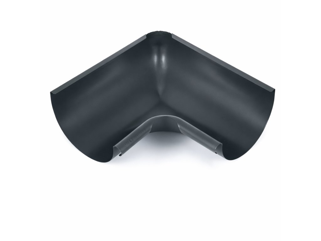 Vnitřní roh okapu z pozinkované oceli, následně lakovaný do moderní barvy RAL 7016 (antracitově šedá).