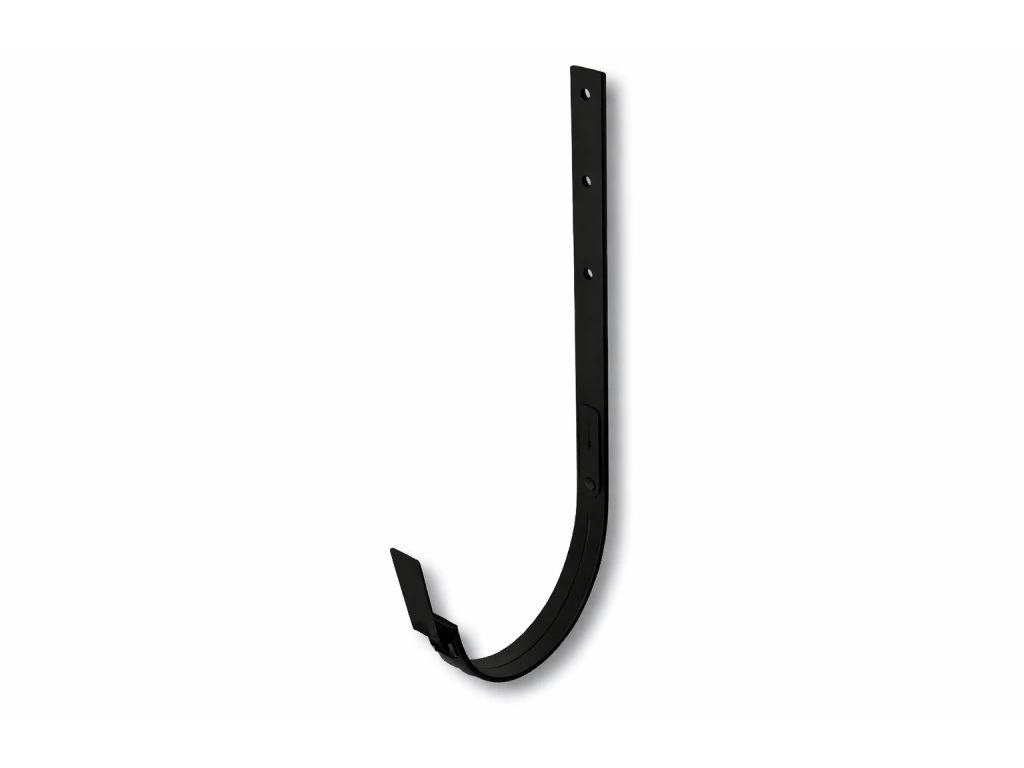 Žlabový hák z pozinkované oceli, následně lakovaný do elegantní černé barvy RAL 9005. Určený pro pevné uchycení okapového žlabu o rozměru 250 mm, délka ramene 430 mm umožňuje stabilní a bezpečnou montáž na střechu. Díky kombinaci zinkování a kvalitního laku nabízí vysokou odolnost proti korozi, dlouhou životnost a jednotný vzhled okapového systému.